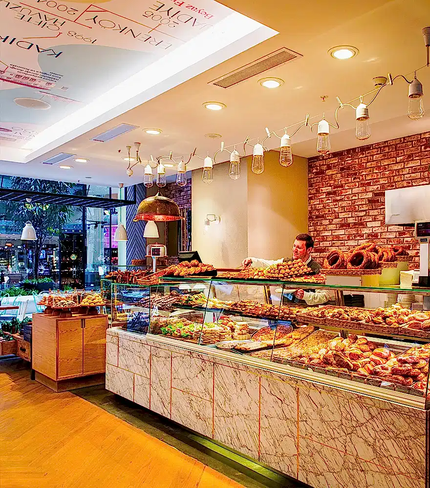 The subsequent Nişantaşı and Moda stores distilled the essence of this evolving concept, designed on a smaller scale to cater primarily as bakery-patisserie outlets offering a limited menu in compact, elegant settings.